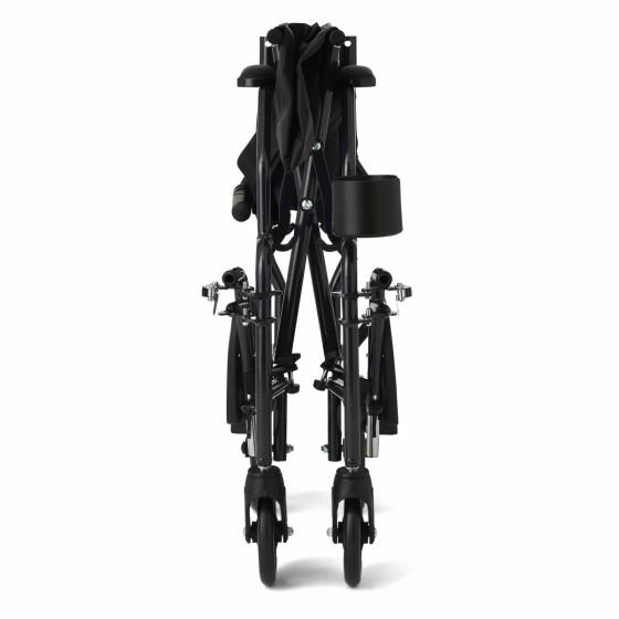 - Durable transport chair weighs less than 15 lbs. and folds up easily for outings with a caregiver